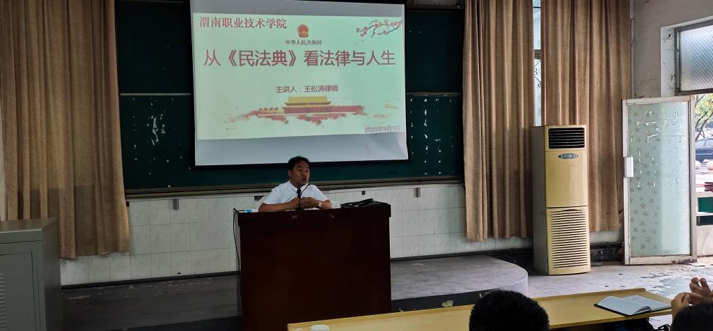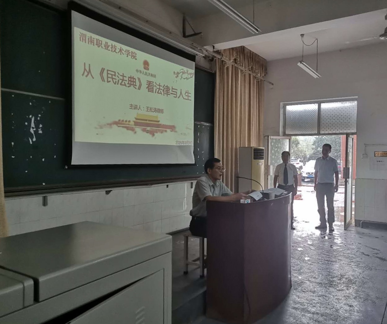 为进一步培养员工法律思维,提高员工的法律意识,9月9日下午,由伟德体育、经济管理公司和建筑工程公司联合举办的“民法典进公司”主题讲座活动在朝阳校区机电楼一楼阶梯教室举行。讲座特邀渭南市政协委员、渭南市人民政府法律顾问王松涛律师为全体员工讲解《民法典》。