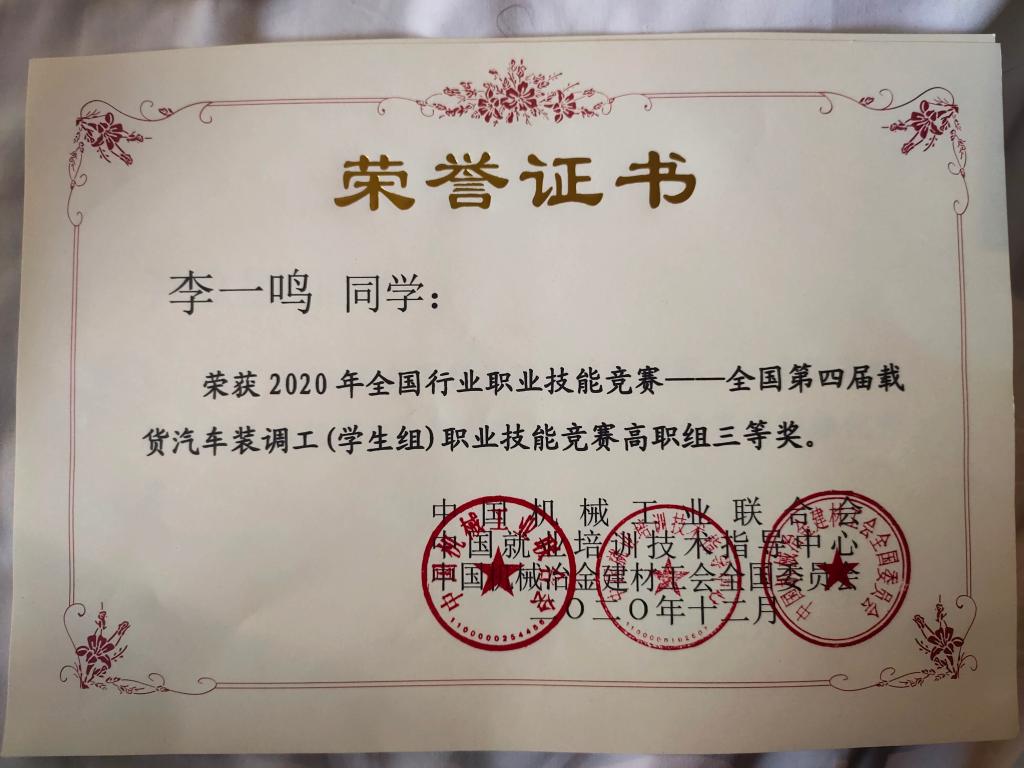 2020年12月1日至3日“全国第四届载货汽车装调工(员工组)职业技能竞赛”总决赛在陕西交通职业技术公司举行,大赛由中国机械工业联合会、中国就业培训技术指导中心、中国机械冶金建材工会全国委员会主办,共有来自全国各省市17所高职院校的34个参赛队。