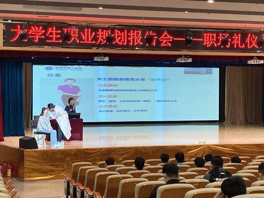为帮助公司员工能够更清晰地进行个人职业规划,掌握必要的职场礼仪和要求,提升老员工职业素养。伟德体育于3月8日下午14:30分在图书馆一楼报告厅举办老员工职业规划报告会及职场礼仪与形象设计展示活动,特邀公司优秀员工渭南市第二医院外联部李英莉主任主讲,2023届计算机专业、大数据技术专业全体实习员工参加,招就科副科长罗彦庆主持。