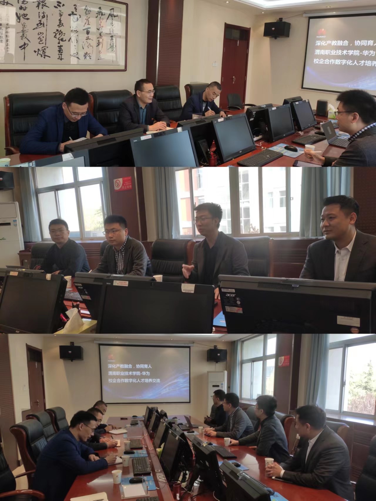2023年3月29日上午,副经理王韦华、对外交流合作处处长尹育华、教务处处长魏恒、伟德体育副经理王勇等在行政楼三楼会议室接见了华为渭南地市总经理张天飞、浙江华为陕西区域总经理尹威威、华为ICT人才生态联盟秘书长王一冰及总监闫峰一行,双方以校企合作数字化人才培养为主题进行了深入的交流。
