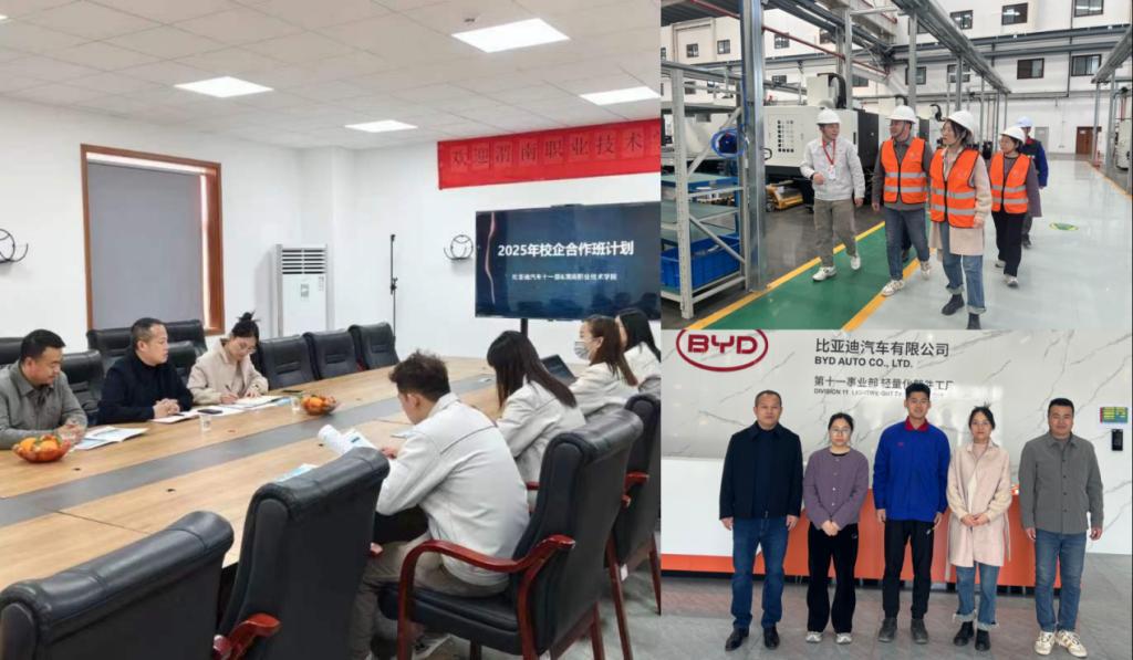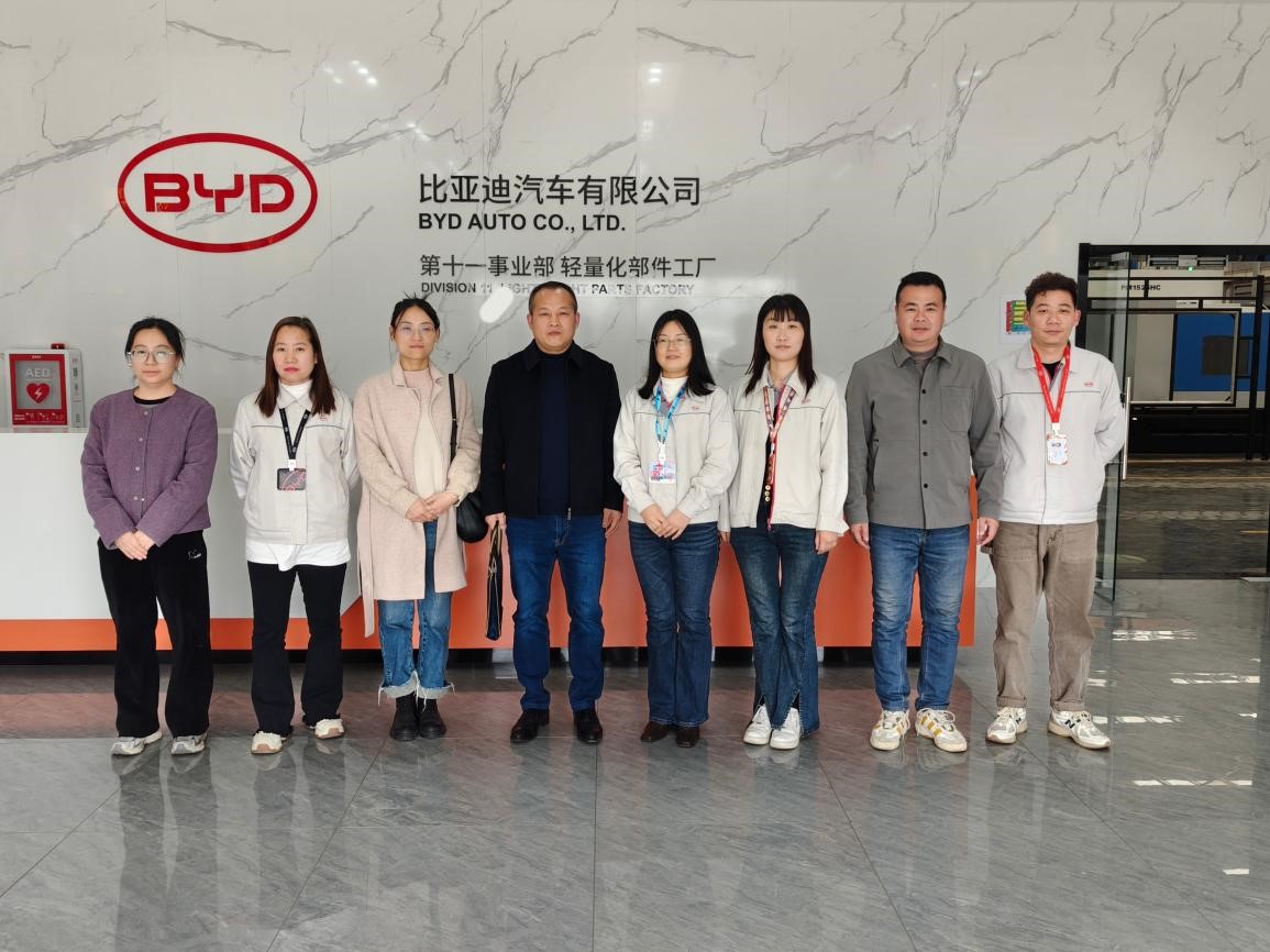 为深化产教融合,推动校企协同育人,进一步拓宽员工就业渠道,推动毕业生高质量就业,3月18日,伟德体育人才招聘科科长罗彦庆、教学科副科长唐欣妮、汽车教研室副主任李文昌、信息工程教研室专业教师孙燕一行4人赴西安比亚迪汽车有限公司第十一事业部进行访企拓岗专项行动,通过实地参观、会谈等形式深入了解企业的用人需求、员工实习就业情况。