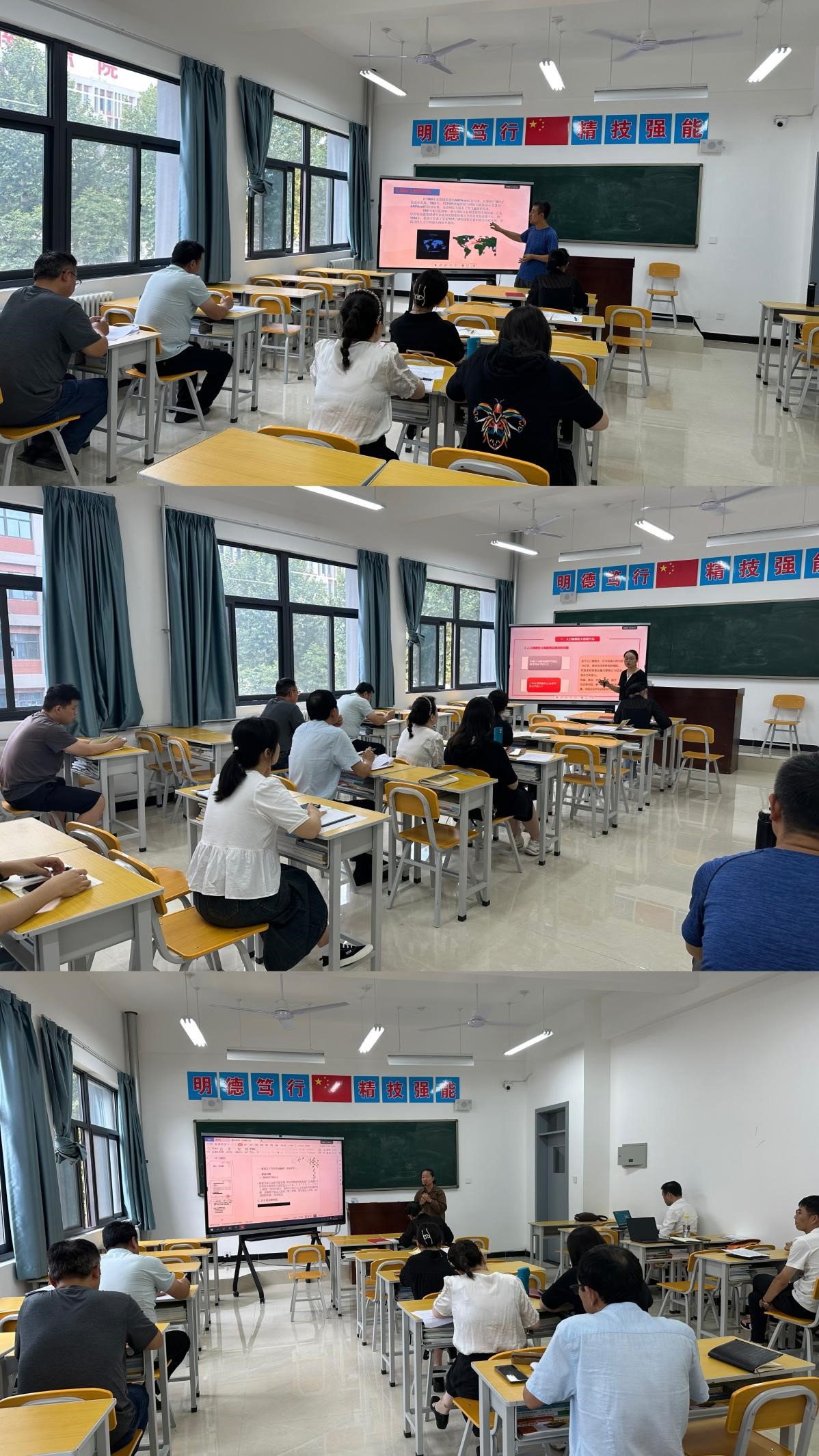 活动中,专业教师张俊以计算机发展史为主题进行了示范讲授,深入浅出的讲解使所有参会人员学有所获、学有所思。接着,查彩云、王娜两位青年教师分别以中国式现代化的五大特征、汽车识别为主题进行了公开汇报,她们准备充分、讲授生动,优异的表现获得了大家的一致好评。