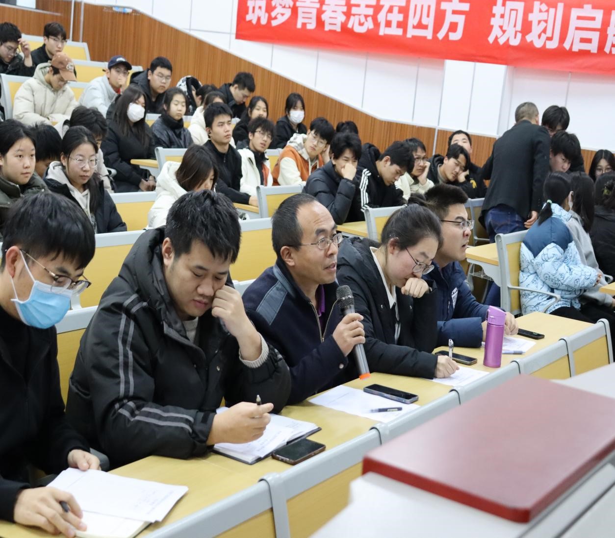党总支副书记杨鹏做总结发言。他对参赛选手的精彩表现给予充分肯定,同时对选手们提出了中肯的建议。他着重强调了选手要在展示时明确重点,突出自己的特色和优点,更是希望选手们能够吸取经验,主动将个人目标与追求融入时代主题和社会发展之中,努力在中华民族伟大复兴的奋斗实践中实现人生价值。希望同学们能够以此次比赛为契机,不断提升自己的职业规划能力,为未来的职业发展打下坚实的基础。辅导员郭琦老师对参赛作品PPT和演讲中应该注意的问题进行了细致地点评,指出不足,指导参赛选手如何更好地表达自我。他鼓励同学们树立职业规划意识、竞争意识和危机意识,明确发展方向,朝着自己的职业目标不懈前行。