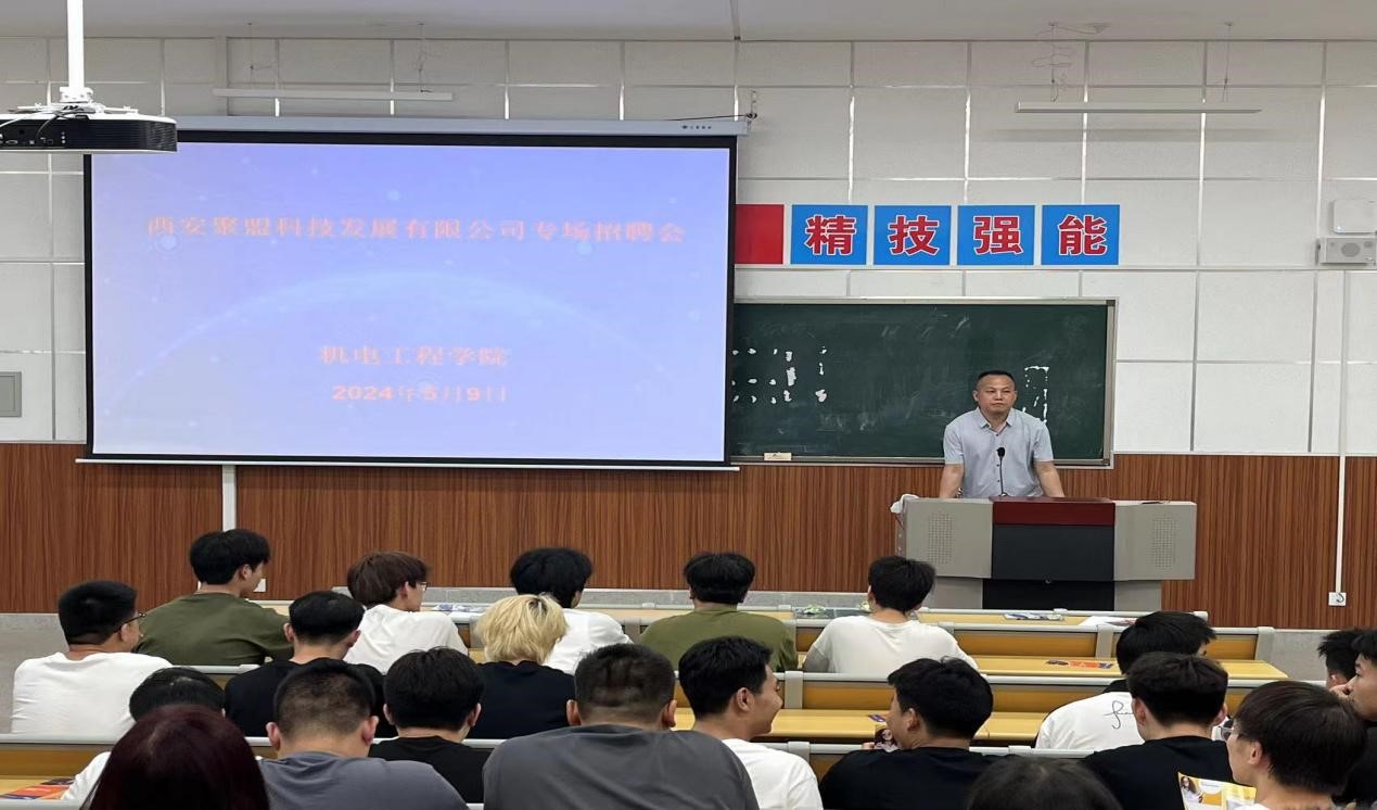 为了给公司学子提供更好的就业机会,为用人单位和毕业生搭建求职招聘双选平台,5月9日,西安聚盟科技发展有限公司专场招聘会在公司综合楼409教室举行。
