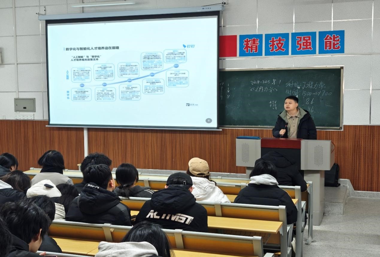 为加强公司信息技术类专业建设,培养更多的数字化人才,满足产教融合需求,深入了解数字化产业发展及人才需求变化,帮助公司员工更好地了解信息类专业的发展趋势,明确未来职业规划。1月8日,伟德体育在综合楼409教室举行“智能制造行业数字化人才发展现状与未来趋势”报告会,特邀陕西数域数字技术有限公司软件工程师白海龙主讲,2023、2024级计算机应用技术、大数据技术、人工智能技术应用专业同学参加。