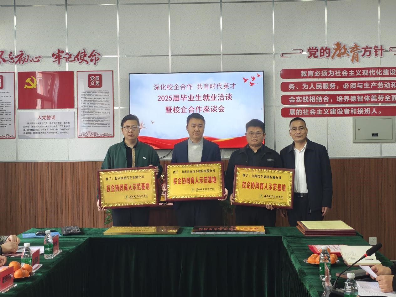 授牌仪式中,王韦华代表公司分别向吉利汽车有限公司、理想汽车有限公司、长安汽车有限公司等合作企业授予“校企协同育人示范基地”铜牌;向中兴通讯终端科技有限公司授予“实习实训基地”铜牌。长安汽车有限公司向公司颁发“优秀育人院校”奖牌,比亚迪汽车有限公司与公司共建“比亚迪订单班校企合作院校”正式揭牌。公司对西安聚盟科技有限公司、比亚迪汽车有限公司、海康威视科技有限公司授予“优秀实习单位”称号。随后,王勇为公司四位教师颁发“优秀实习指导教师”荣誉证书。